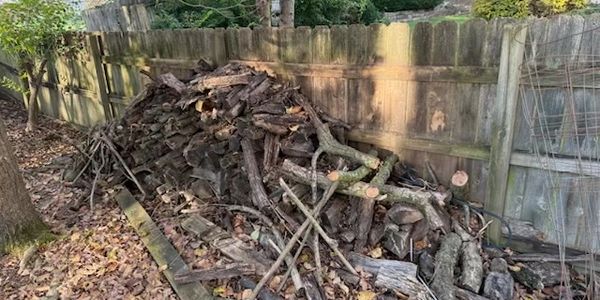 Backyard cleanup after removal of old, rotted firewood near the fence. Cheers 2 Trash hauled away the debris and properly disposed of it, leaving the yard clean and clutter-free in Delaware and Franklin Counties.